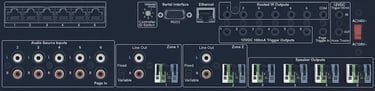 Therefore, each zone — whether it’s a single room or several rooms combined — has its own streaming amplifier installed.