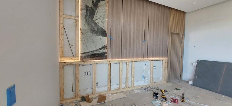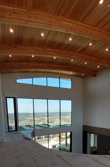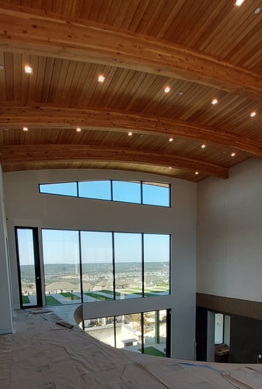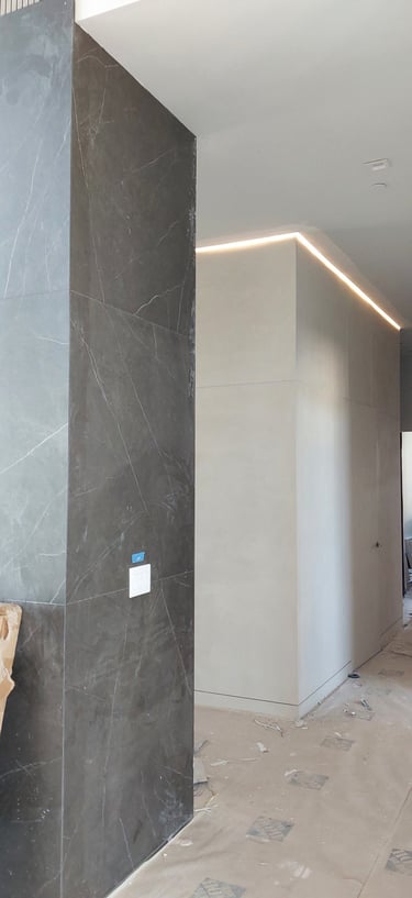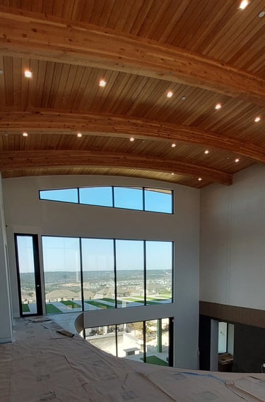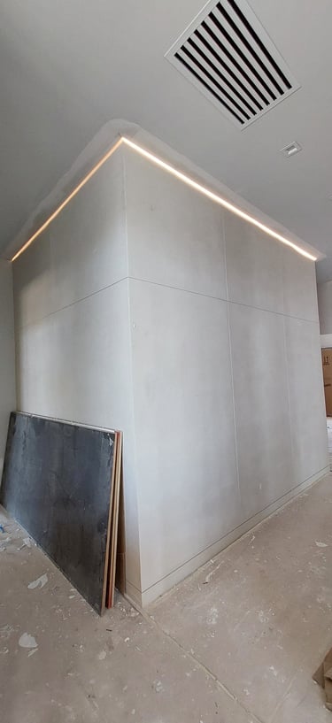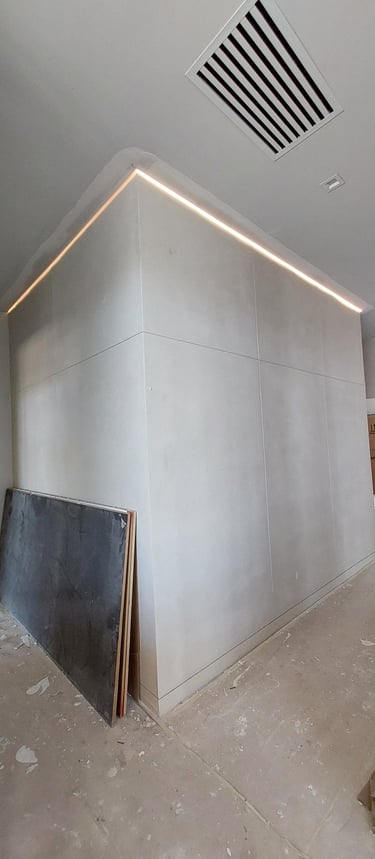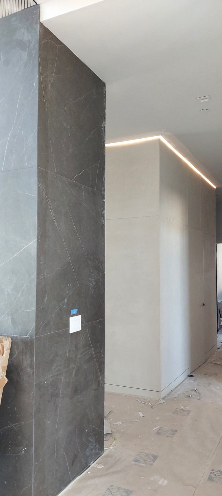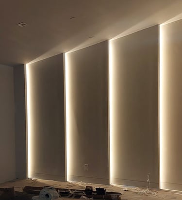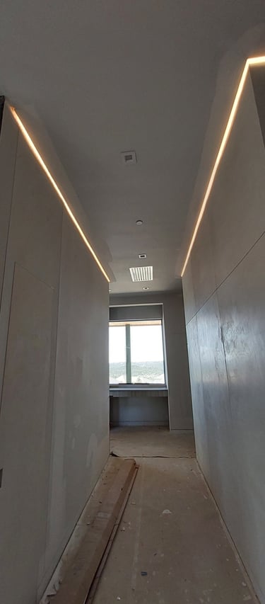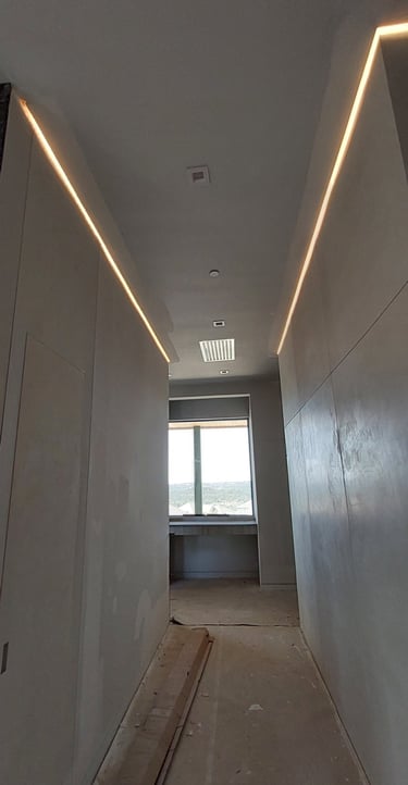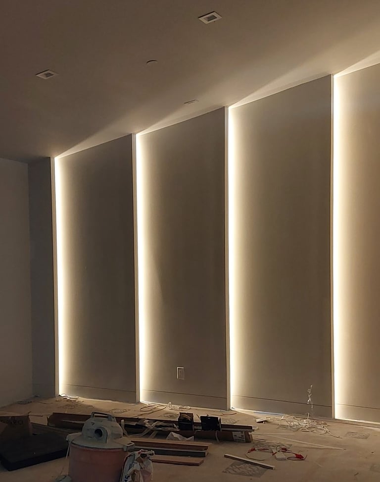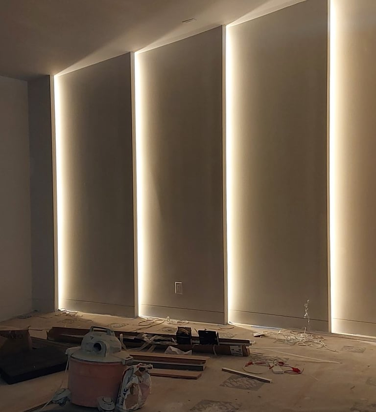 LED lights were installed around the house. It will be very beautiful when the construction of the house is finished.