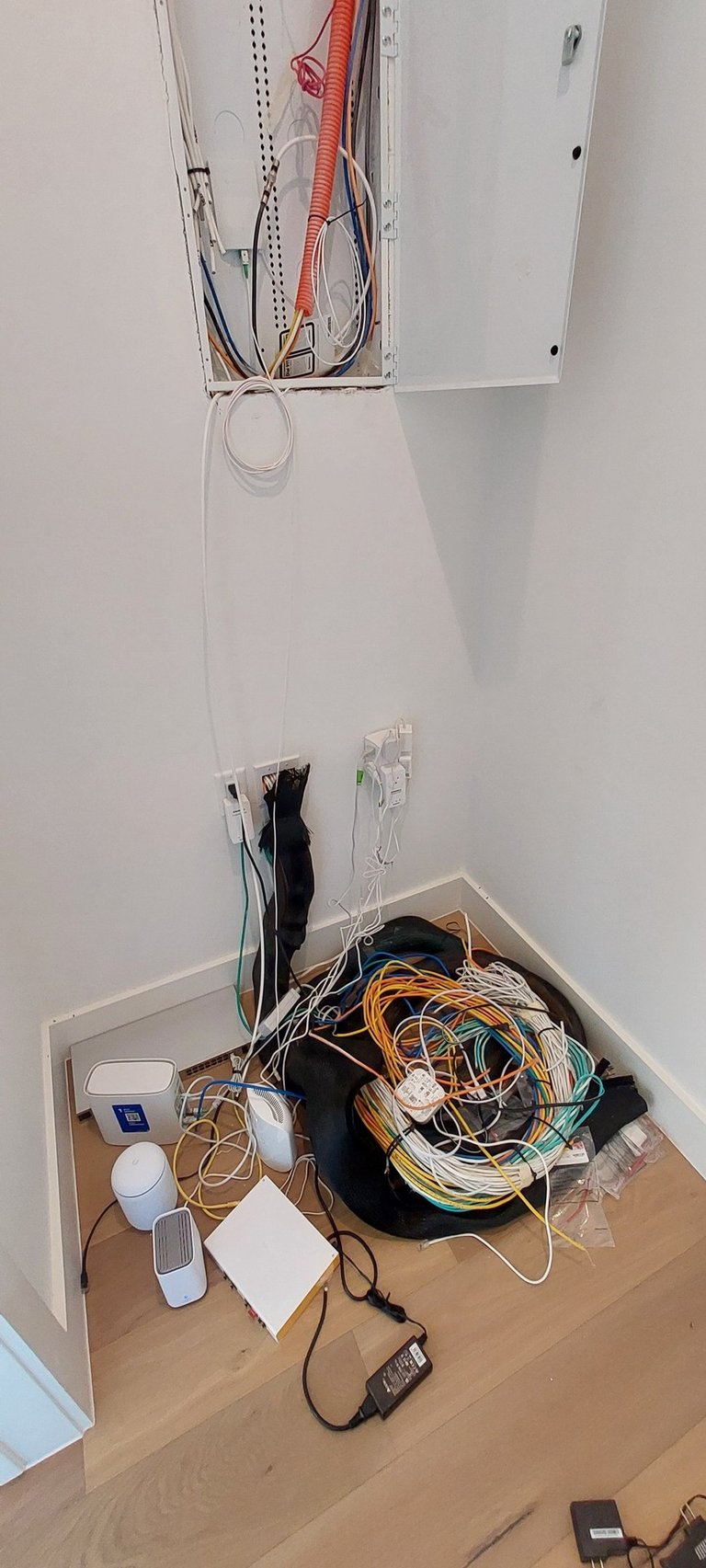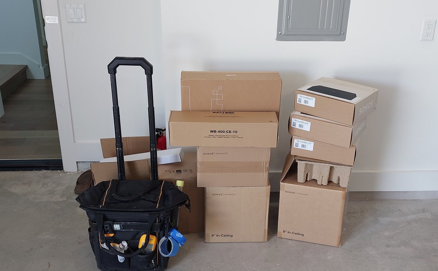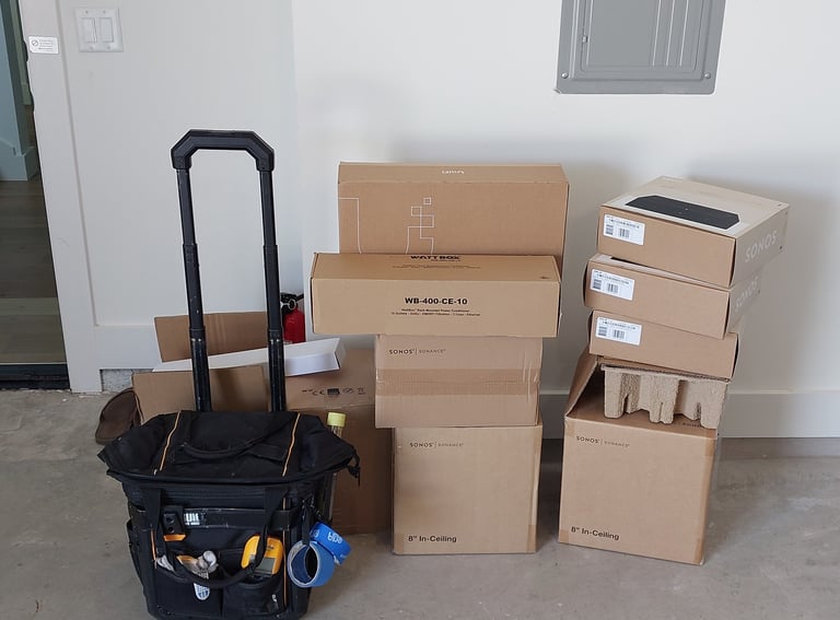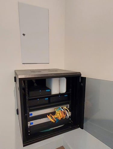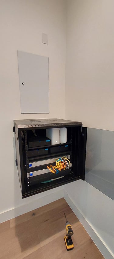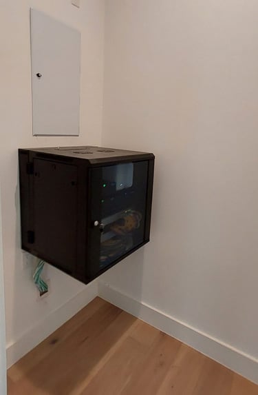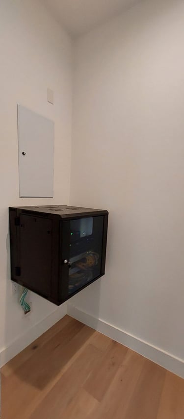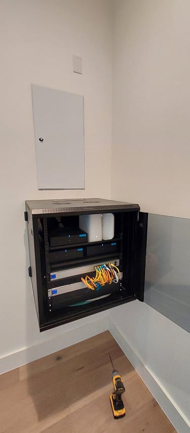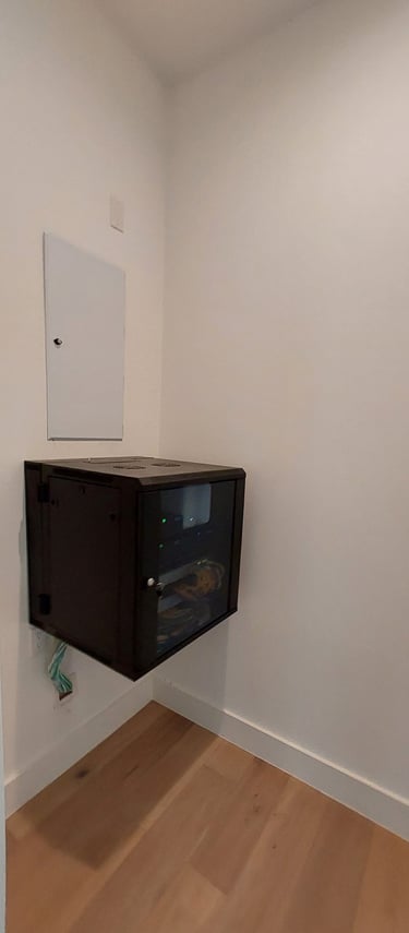 For this project, we set up Sonos speakers in multiple areas for home audio and organized the wiring in the equipment closet.