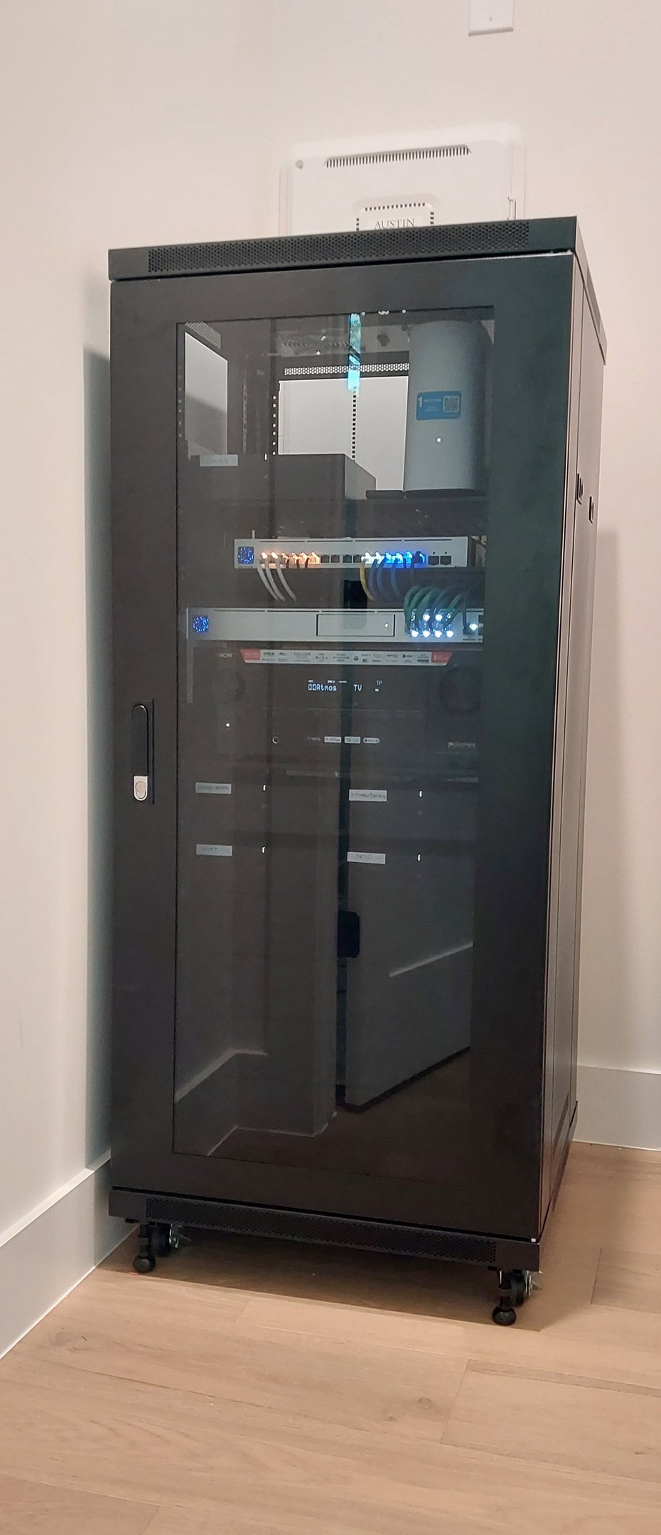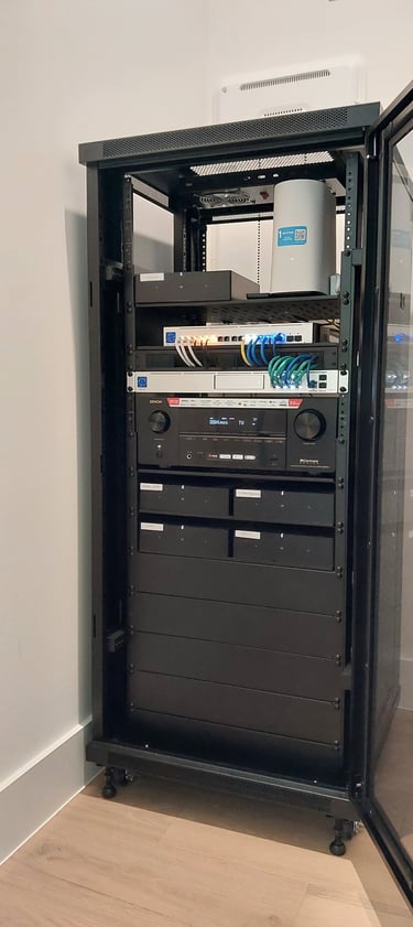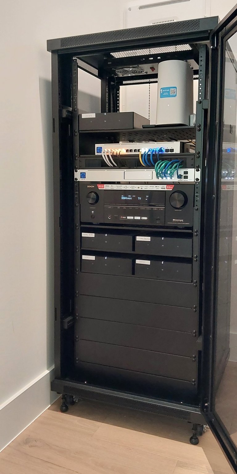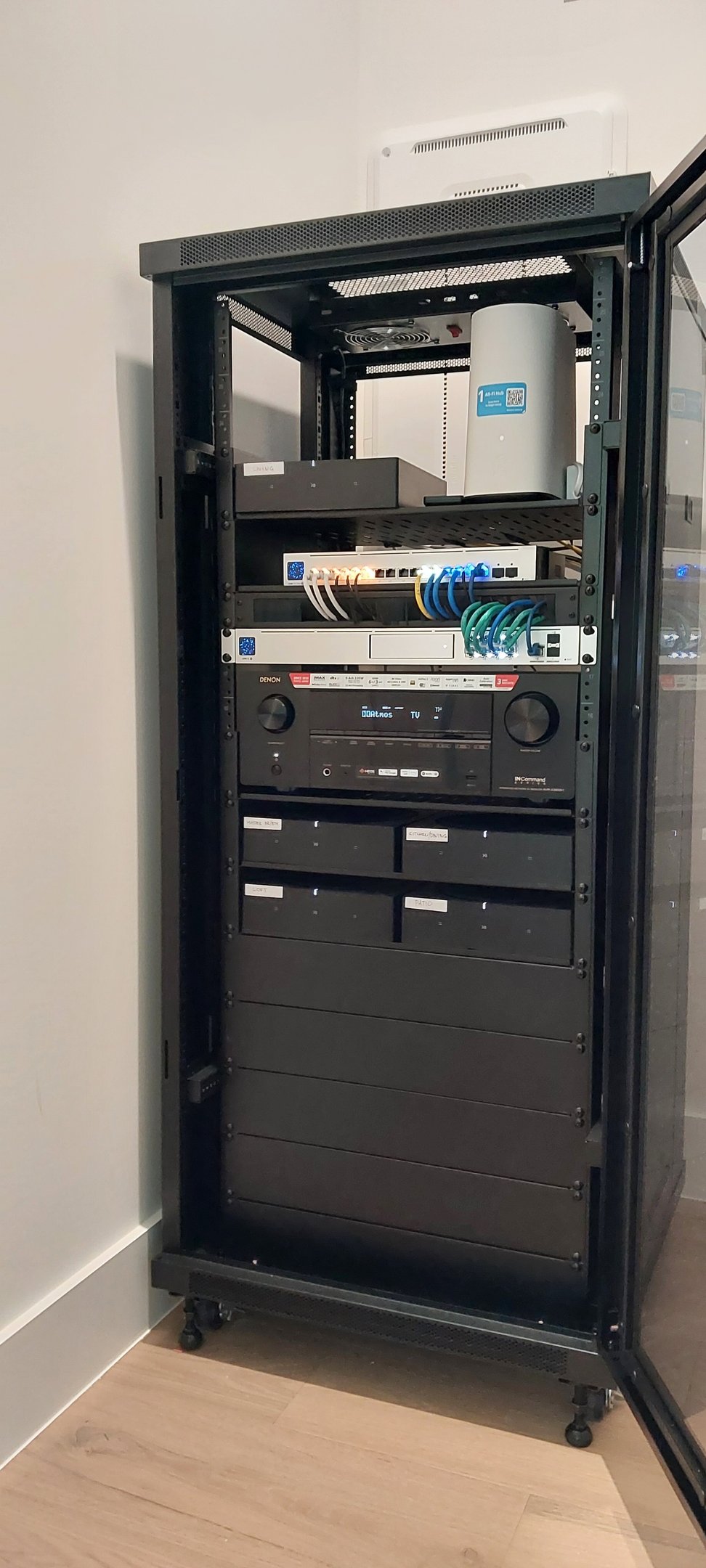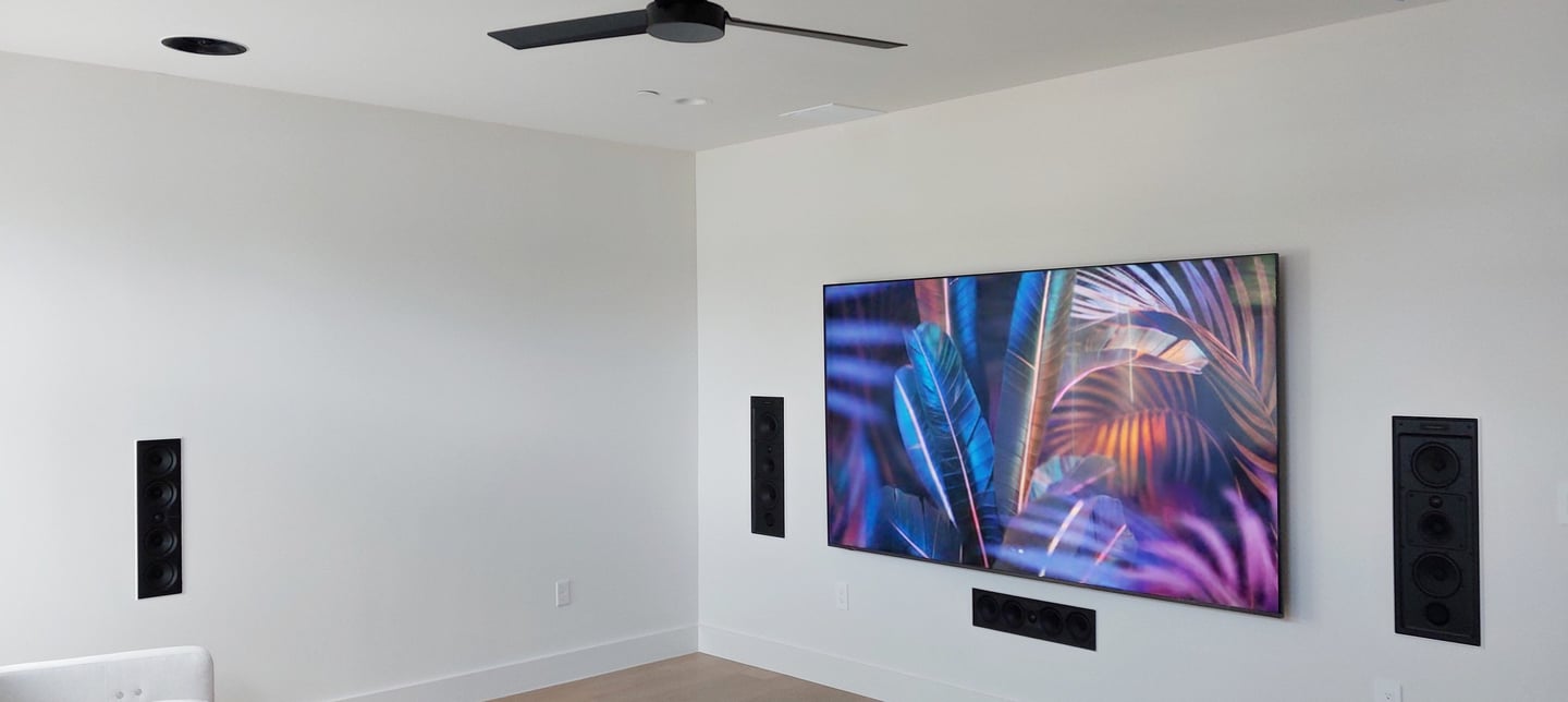 The standout aspect of this project is the exceptional B&W speakers we integrated for multi-zone home audio, including a 7.1.2 setup in the media room that delivers premium, highly detailed audio with truly explosive impact.